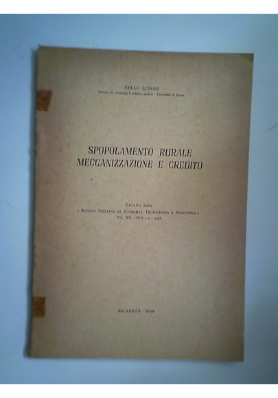 SPOPOLAMENTO RURALE MECCANIZZAZIONE E CREDITO
