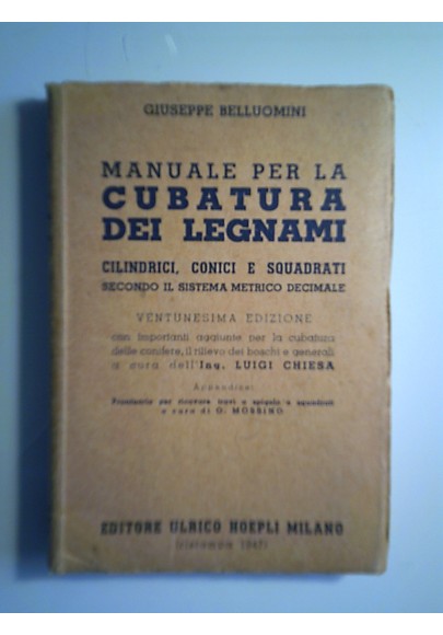 MANUALE PER LA CUBATURA DEL LEGNAME SECONDO IL SISTEMA METRICO DECIMALE VENTUNESIMA EDIZIONE