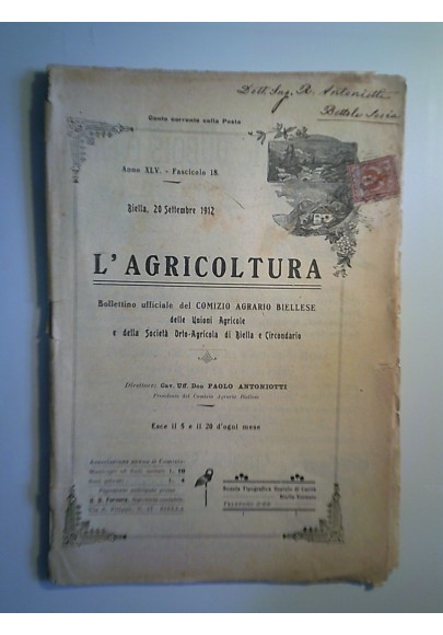 L'AGRICOLTURA Bollettino ufficiale del COMIZIO AGRARIO BIELLESE Anno XLV Fasc. 18 20 Settembre 1912