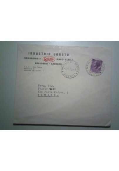 Busta Viaggiata "INDUSTRIA VENETA GIESSE SERRAMENTI - AVVOLGIBILI BASSANO DEL GRAPPA" 1957