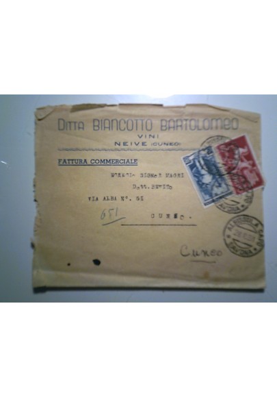 Busta Viaggiata "Ditta BIANCOTTO BARTOLOMEO VINI - NEIVE ( Cuneo )" 1951