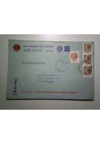 Busta Viaggiata "IL GLOBO Istituto di Informazioni e Investigazioni Private PRATO" 1978
