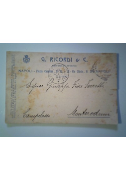 Cartolina "G. RICORDI & C. Editori di Musica - NAPOLI" 1914