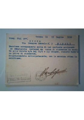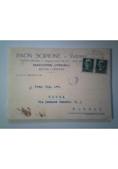 Cartolina "PAON SCIPIONE Verona MACCHINE - UTENSILI - ACCIAI - CINGHIE" 1936