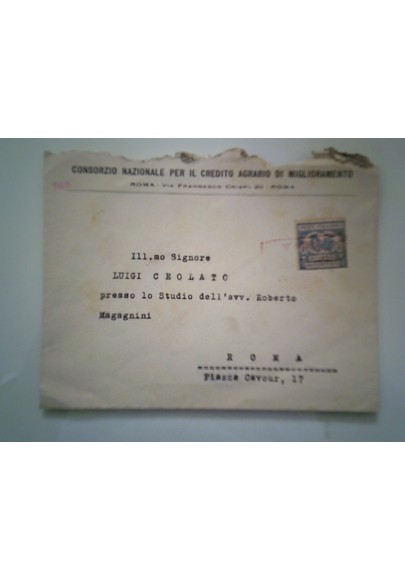 Busta Viaggiata "CONSORZION NAZIONALE PER IL CREDITO AGRARIO DI MIGLIORAMENTO - ROMA" Recapito Autorizzato
