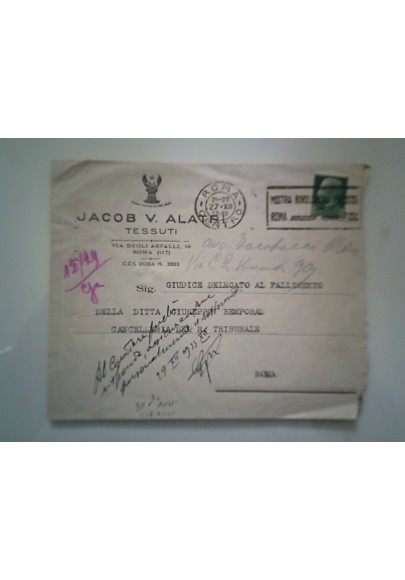 Busta Viaggata "JACOB. V. ALATI TESSUTI - ROMA" 1933