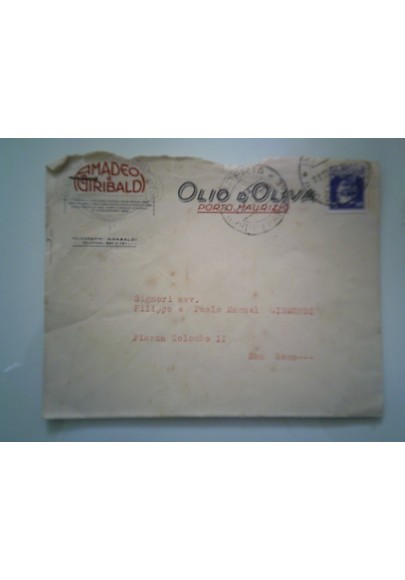 Busta Viaggiata "AMADEO E GIRIBADI OLIO D'OLIVA - PORTO MAURZIO" 1935
