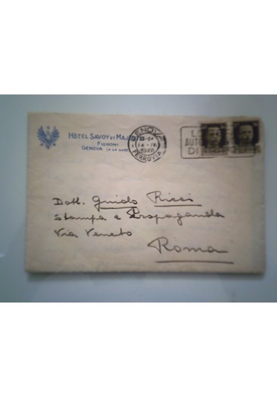 Busta Viaggiata "Hotel Savoy et Majestic Fioroni Genova" 1938