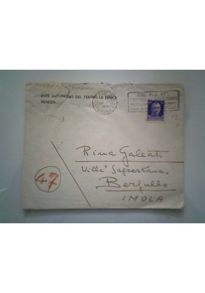Busta Viaggiata "ENTE AUTONOMO DEL TEATRO LA FENICE VENEZIA" 1938