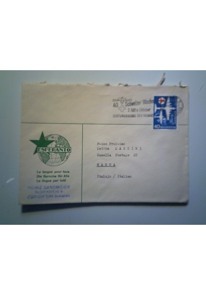 Busta SVIZZERA per l'Italia "ESPERANTO LA LINGUA PER TUTTI" 1956