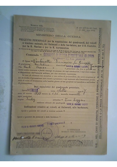MINISTERO DELLA GUERRA PRECETTO COMANDO DIFESA TERRITORIALE ROMA 1942