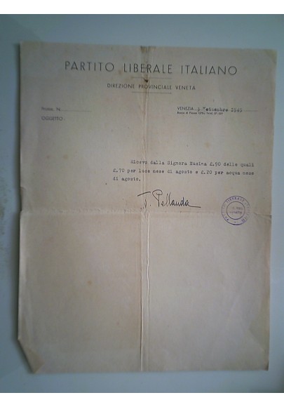 PARTITO LIBERALE ITALIANO DIREZIONE PROVINCIALE VENETA 3 Setteembre 1945