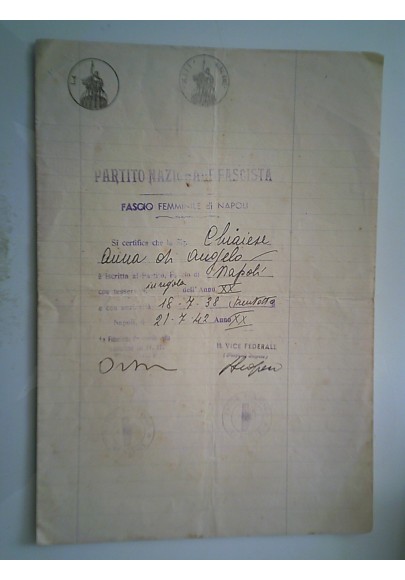 PARTITO NAZIONALE FASCISTA Fascio Femminile di Napoli 1942