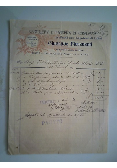 CARTOLERIE E FABBRICHA DI CERALACCA Giuseppe Fioravanti ROMA 1912