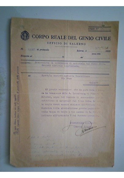 CORPO REALE DEL GENIO CIVILE UFFICIO DI SALERNO 1935