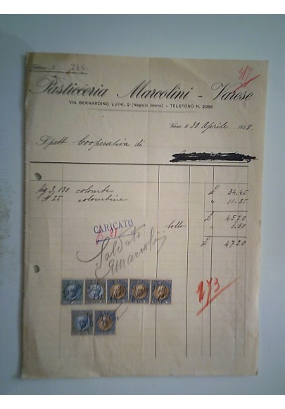 PASTICCERIA MARCOLINI Varese 30 Aprile 1938