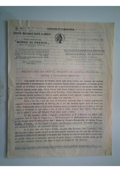 SOCIETA' NAZIONALE DANTE ALIGHIERI Opera Nazionale "BORSE DI PREMIO" Este 22 Marzo 1926