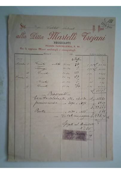 DITTA MARTELLI TROJANI NEGOZIANTI Roma 30 Dicembre 1899