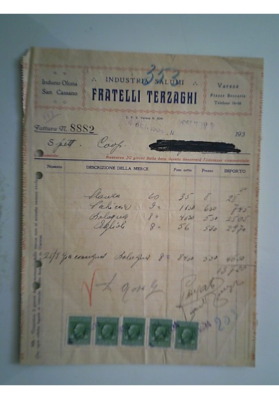 INDUSTRIA SALUMI FRATELLI TERZAGHI VAERESE 4 Settembre 1934