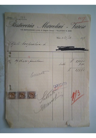 PASTICCERIA MARCOLINI Varese 31 Dicembre 1937
