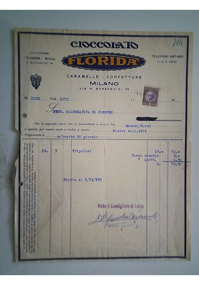 CICCOLATO FLORIDA CARAMELLE - CONFETTURE MILANO 9 Dicembre 1939