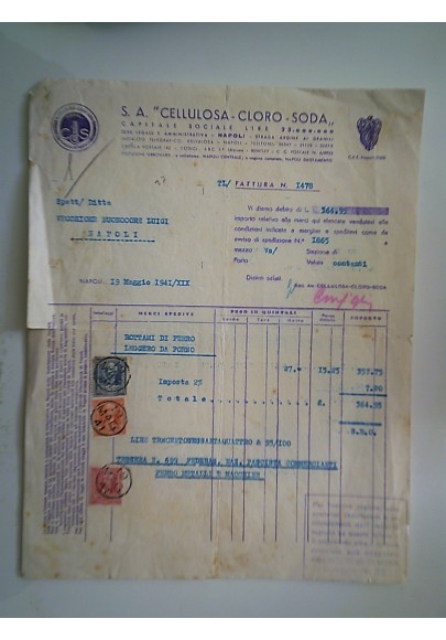 S.A. CELLULOSA CLORO - SODA NAPOLI 19 Maggio 1941