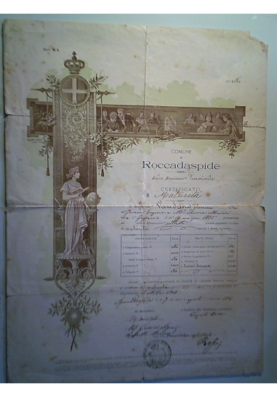 COMUNE DI ROCCADASPIDE Scuola Elementare Femminile CERTIFICATO DI MATURITA' 7 Agosto 1907