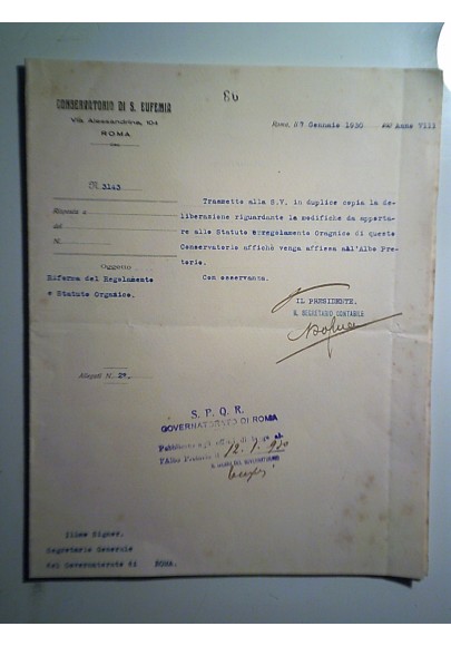 CONSERVATORIO DI S. EUFEMIA Roma 7 Gennaio 1930 - VIII