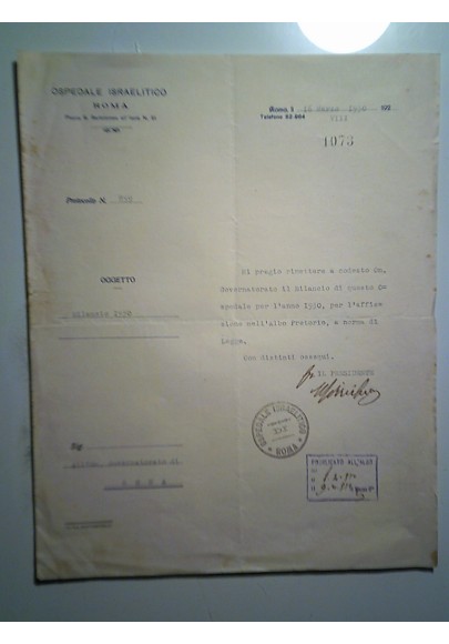 OSPEDALE ISRAELITICO Roma 16 Marzo 1930 - VIII