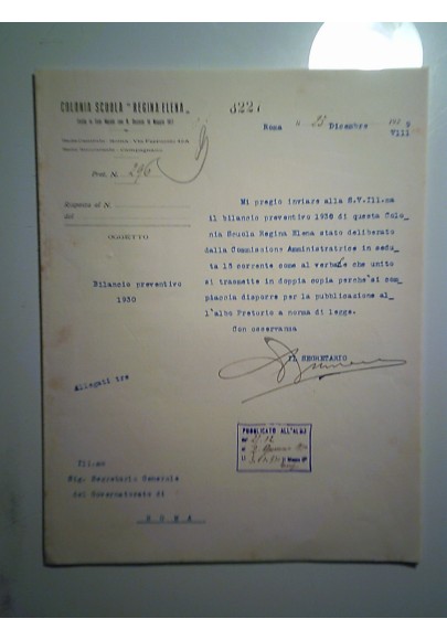 COLONIA SCUOLA REGINA ELENA Roma 23 Dicembre 1929 - VIII