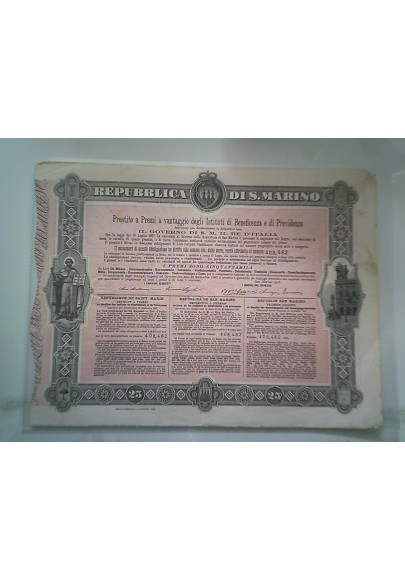 Repubblica di S. Marino PRESTITO A PREMI 1908