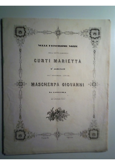 NELLE FAUSTISSIME NOZZE CURTI - MASCHERPA CANTO Novara 20 Gennaio 1857