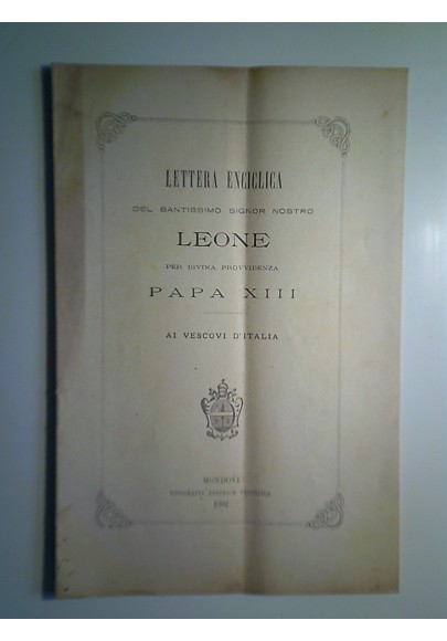 LETTERA ENCICLICA DEL SANTISSIMO SIGNOR NOSTRO LEONE PER DIVINA PROVVIDENZA PAPA XIII AI VESCOVI D'ITALIA