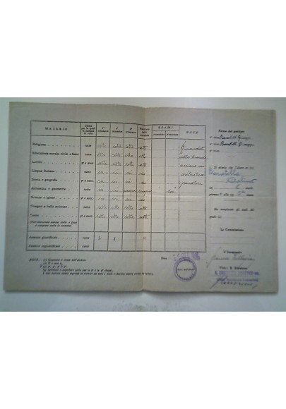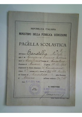 "REPUBBLICA ITALIANA MINISTERO DELLA PUBBLICA ISTRUZIONE PAGELLA CASALINO 1948"