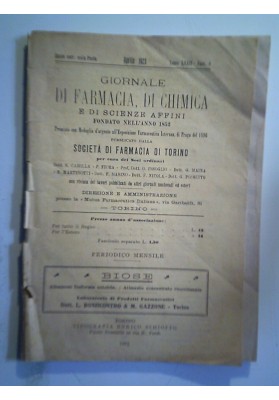 GIORNALE DI FARMACIA, DI CHIMICA E DI SCIENZE AFFINI Aprile 1923