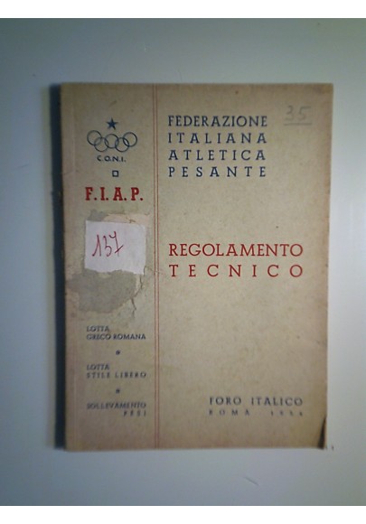 C.O.N.I. Federazione Italiana Atletica Pesante REGOLAMENTO LOTTA GRECO ROMANA, LOTTA STILE LIBERO, SOLLEVAMENTO PESI