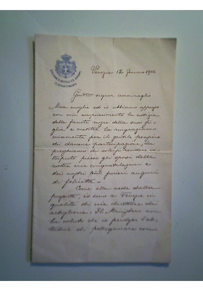 DIREZIONE D'ARTIGLIERIA ARMATA 3° DIPARTIMENTO Venezia 12 Gennaio 1906