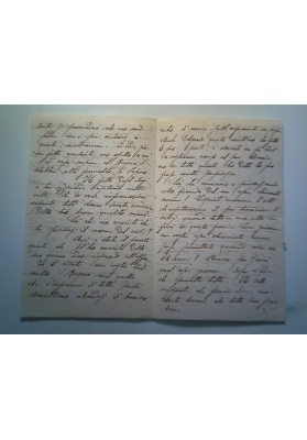 Lettera manoscritta in bella calligrafia su foglio doppio di carta intestata figurata.