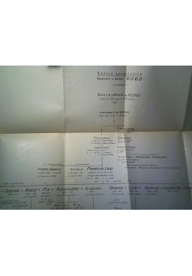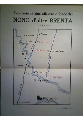 Formato in 16°;   16 pagine. Brossura editoriale: copertina posteriore assentre. Testo dattiloscritto. Interno fresco. Con Tavole in cromolitografia ripiegate "STEMMA DEI NONO D'OLTRE BRENTA - STEMMA DEI NONO DI PADOVA ALBERO GENEALOGICO DEI NONO DISCENDENTI DA PRINCIPI DSI NARBONA E DAI CONTI DI TOLOSA TERRITORIO DI GIURISDIZIONE E FEUDO DEI NONO D'OLTRE BRENTA TAVOLA GENEALOGICA RIGUARDANTE LA FAMIGLIA NONO". Esemplare unico.e