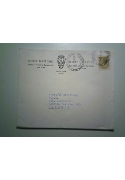 Busta Viaggiata "HOTEL D'AZEGLIO - HOTEL CECILE PISA" 1970