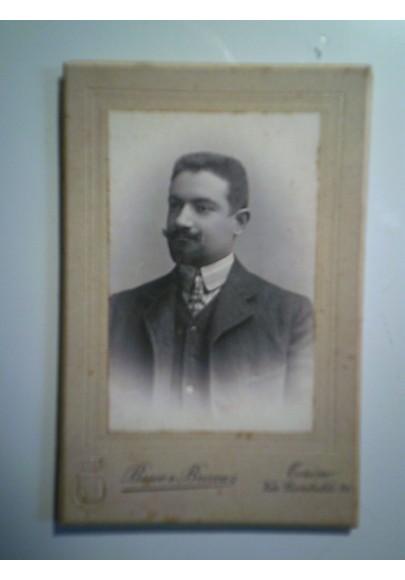 Fotografia in nero montata su cartoncino.  Ritratto maschile. Dimemsioni complessive: 12 x 8 cm.