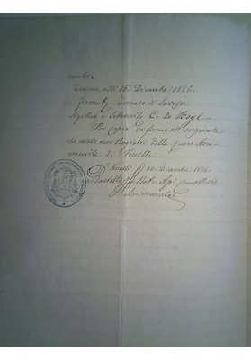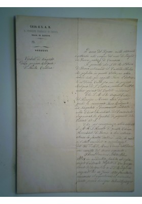 Lotto di 2 Documenti Storici: Cessione Reliquia di Santa Cristina Alba, Luglio 1870.Con il patrocinio del Principe Tommaso di Savoia e del Prevosto dell'Ordine dei SS. Maurizio e Lazzaro.  Manoscritti su carta intestata e filigranata con timbri  e firma del Prevosto.
