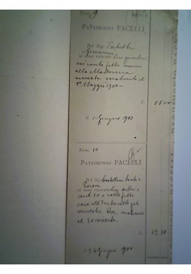 Eccezionale documento storico manoscritto appartenente all'archivio amministrativo della Famiglia Pacelli, risalente all'anno 1900. Il registro offre uno spaccato inedito sulla gestione economica di una delle più influenti casate della "Nobiltà Nera" romana, in un anno cruciale che vide il giovane Eugenio Pacelli (futuro Papa Pio XII) muovere i primi passi della sua carriera ecclesiastica.