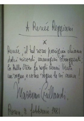 Formato in 16°; 374 pagine. Legatura editoriale con sovraccoperta e fascetta. Lunga dedica dell'Autore alla scrittrice e giornalista Renèe Reggiani ( 1925 - 2019 ).