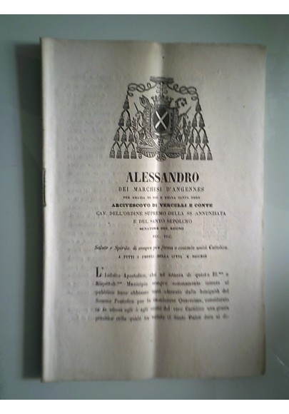 Alessandro Vincenzo Ludovico d'Argennes, Arcivescovo di Vercelli - Vercelli, Tip. Arcivescovile 1863.