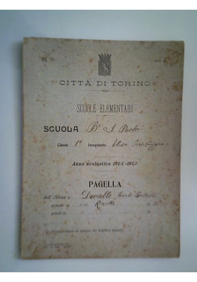 CITTA' DI TORINO SCUOLA ELEMENTARE BEATO S. PAOLO Anno Scolastico 1914 - 1915