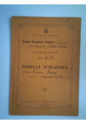 CITTA' DI NOVARA Scuola Elementare Popolare PAGELLA Anno Scolastico 1922 - 1923
