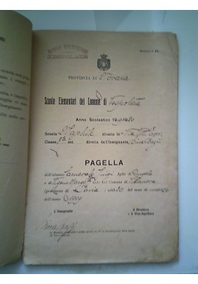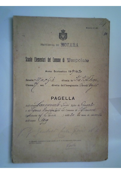 Scuole Elementari del Comune di Vespolate PAGELLA Anno Scolastico 1919 - 1920