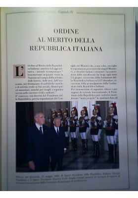 Formato in 4°; 462 pagine. Legatura editoriale in similpelle con titoli in oro al dorso e al piatto anteriore. Interno fresco. Con fotografie a colori. Stampa su carta pregiata. Collana editoriale "Le Donne e gli Uomini della Repubblica".