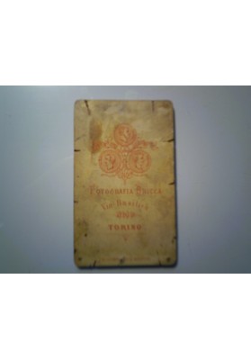 Fotografia all'albumina conn  segni del tempo in formato CDV. Retro con pubblicità dello Studio Fotografico Bricca di Torino.